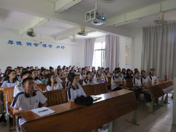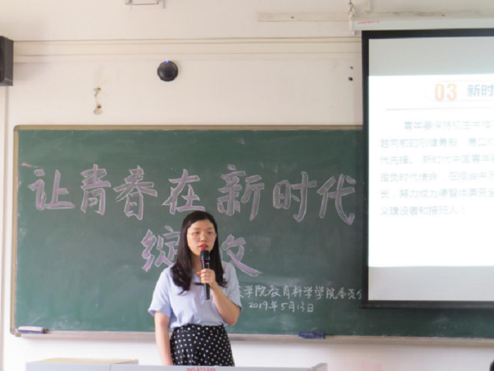 大会伊始,林舒莹老师对五四运动的意义与价值作出深刻的阐明并指出,学生干部应起带头作用,端正思想信仰,明确目标,要带领同学们向党组织靠拢。随后,林老师从思想、爱国等六个方面解读了习总书记的讲话,并对学生干部提出了六点建议:一是树立远大理想,不做碌碌无为之人;二是要秉承爱国的本分;三是要做好模范作用,做同学们的楷模;四是要有积极的态度,不要因为一次失败而否定自己;五是在坚定梦想的同时,不忘提高成绩;六是端平心中的两杆称,不走歪路。
