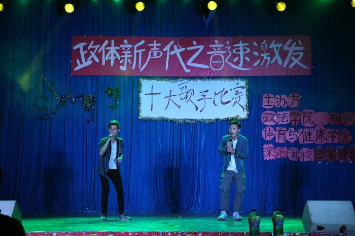 本网讯(通讯员 廖龙海)11月11日晚,由政法学院、知识产权学院及体育与健康学院联合举办的“政体新声代之音速激发十大歌手总决赛”于我校学生活动中心大礼堂成功举行。来自体育与健康学院的刘道强老师、唐运刚老师等领导出席本次大赛。