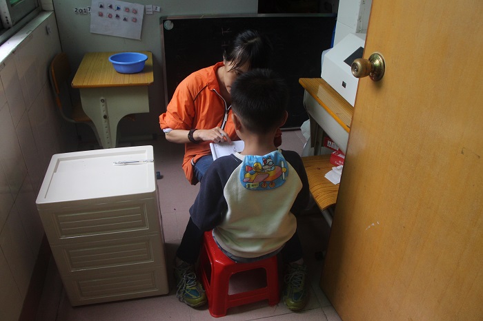 培训中心采用的是专门性、一对一教学的方法。在接受过一定培训的孩子并不会像刚开始进来那般无自控能力,容易哭闹且喜欢动手打人。相反地,他们能够安静地坐在椅子上看电视,也会听老师的话学习吹蜡烛、穿衣服等基本的生活自理课程。但是,他们上课很容易走神,老师需要经常停下来安抚他们。自闭症孩子有自己的世界,对于陌生人他们不会有任何反应,会直接忽视他人的交流互动。