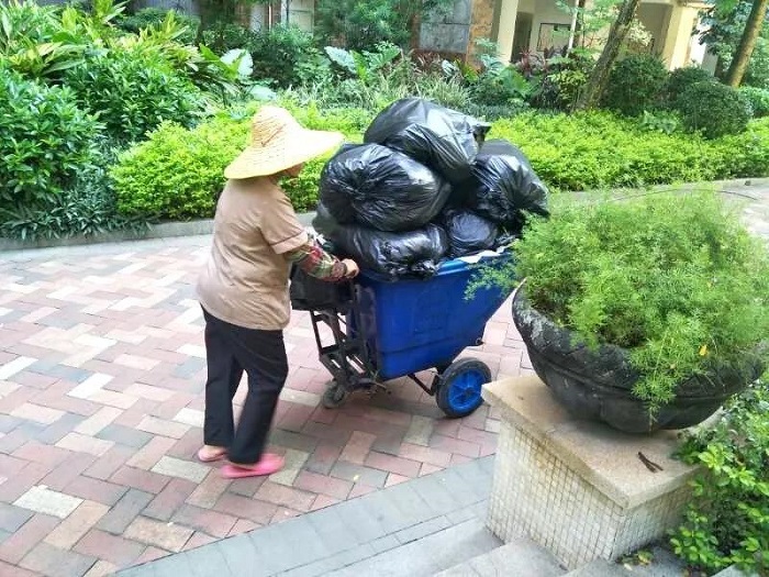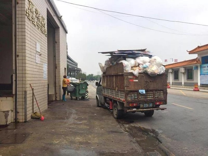 调查组走访时发现,在大路、街道及住宅小区都放置标有“可回收”和“不可回收”的垃圾桶。据了解,大部分居民仅将厨余垃圾与其余垃圾(如纸箱、塑料瓶等)分袋处理,很少再细分区别放置;而清洁工在回收时需要对垃圾再进行分类,工作量比较大。