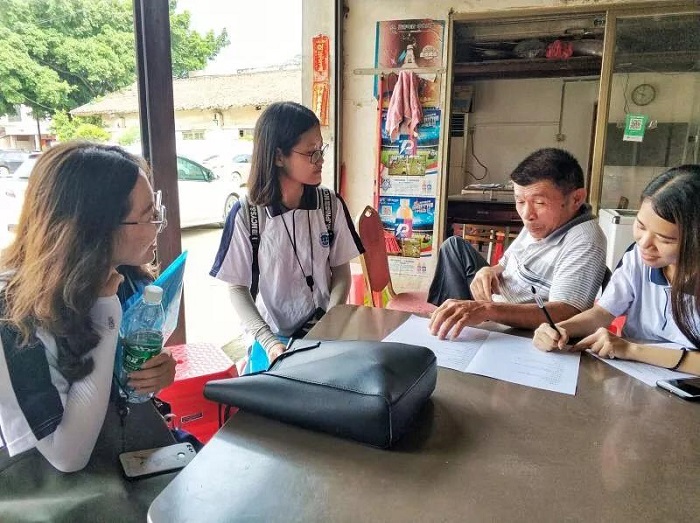 队员在做问卷调查