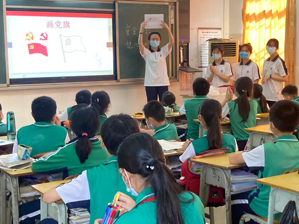 在授课之余,志愿者们通过穿插画党旗、看图猜伟人等小游戏,让同学们在轻松愉悦的气氛中学习党史,了解党史,将热爱党史真正植根于孩子们心中。志愿者们还通过有奖竞猜、提问等方式向同学们介绍党史,有效提高同学们的学习兴趣与积极性。有趣生动的教学形式,不仅活跃了课堂气氛,还进一步加深了同学们对中国共产党的认识和了解。