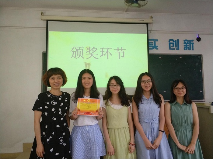 本次比赛共有十组参赛队伍入围。在比赛过程中,选手们选材多种多样,配音手法各有千秋。他们通过手势、眼神、动作和感情语气词等充分地诠释出所配影片的内涵。组员们之间的完美配合是本次比赛的一大亮点。此次比赛异彩纷呈,选手角逐激烈。一首柔情的日语歌曲过后,比赛结果新鲜出炉。15日语1班的选手李月蓉、卢泽芸、王青和许洁纯所在的小组夺得一等奖。
