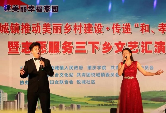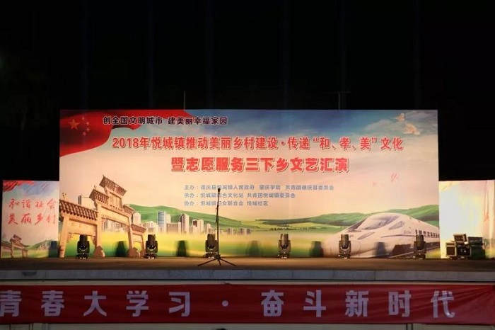 7月12日至14日,为响应党和学校鼓励大学生志愿者积极参加暑期“三下乡”社会实践活动的号召,在指导老师丁洋、李文佳和带队老师陈晓仪、王雅琴组织下,音乐学院筹备了包括舞蹈、古筝独奏、流行歌曲演唱等节目形式丰富的义演晚会。