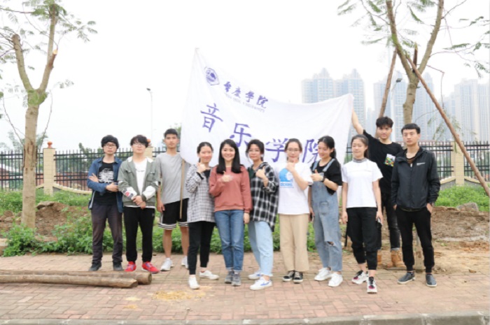 本网讯 2019年4月3日下午,在音乐学院党委副书记陈瑛瑛的带领下,我院辅导员陈晓仪和学生志愿者前往学校旧网球场南侧空地参加william威廉中文官网2019年义务植树活动,以实际行动倡导绿色发展理念,为建设美丽校园奉献力量。