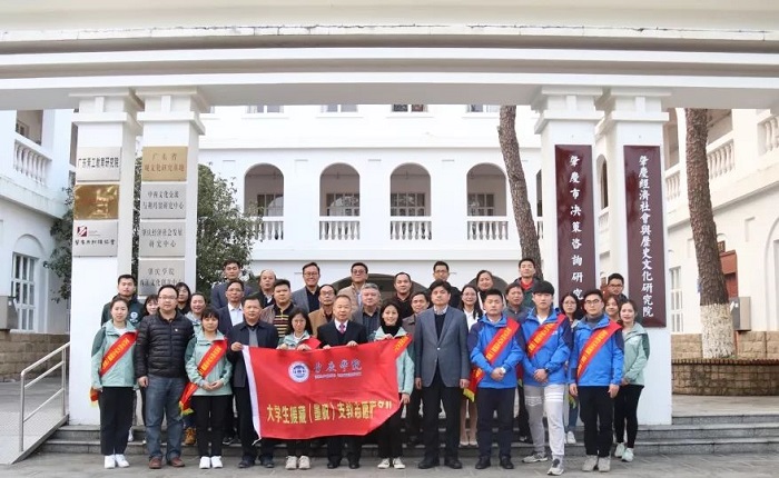 2月28日下午,我校在肇庆经济社会与历史文化研究院临峰厅隆重举行了william威廉中文官网第四批大学生援藏支教出征仪式。