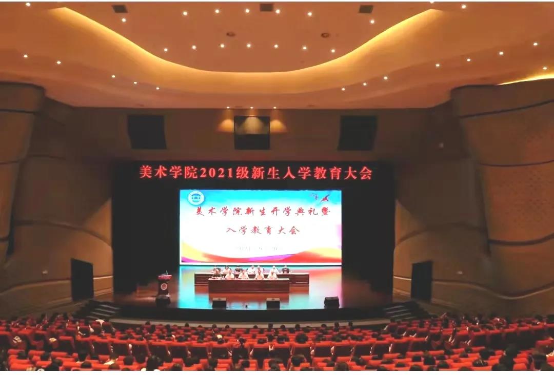 为帮助新生尽快熟悉和适应校园环境,9月20日晚,美术学院在剧场举办了2021级新生开学典礼暨入学教育大会,向新生的到来致以了热烈欢迎!大会由学院党委副书记邓泽南主持,学院院长梁善、党委书记蔡卡宁先后发表致辞。学院副院长李小军、李刚,美术学系主任卢东明、莫世峰,视觉传达设计系主任董业子,环境设计系主任杨国杰,工艺美术系主任徐婷,产品设计系主任韩凌云,动画系主任黄林,辅导员和新生班主任出席参加了典礼。