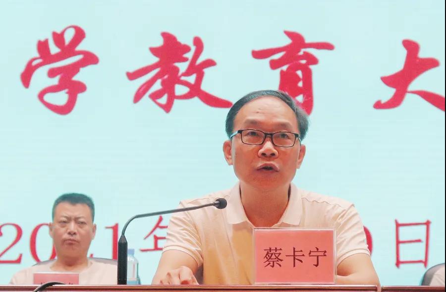 美术学院党委书记蔡卡宁向新生介绍了我院今年在扩招下仍以第一志愿高分录满的普高招录情况和良好的毕业生就业情况,鼓励同学们在这个新的起点上,树立远大理想信念,以党和国家的利益为重,将自己的前途和命运与党和国家的前途和命运紧密联系在一起,把个人理想奋斗融入到祖国建设当中来,注重自身品德修炼、加强身体锻炼、夯实美术专业基础,做有理想、有本领、有担当的新时代青年!