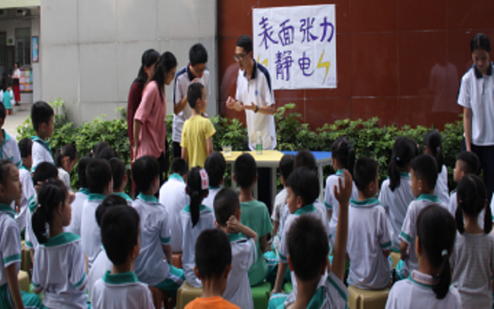 本网讯(记者 林崇韬 杨咏淇)为了提高肇庆小学生的课外知识水平,提高志愿者参与社会实践活动的能力,展示大学生时代风采,电子与电气工程学院学生会社会实践部联合机械与汽车工程学院学生会社会实践部、环境与化学工程学院外联部、食品与制药工程学院学生会外联部,在4月17日、24日和26日分别在肇庆市下瑶小学与河苑小学举办了三次义教活动。