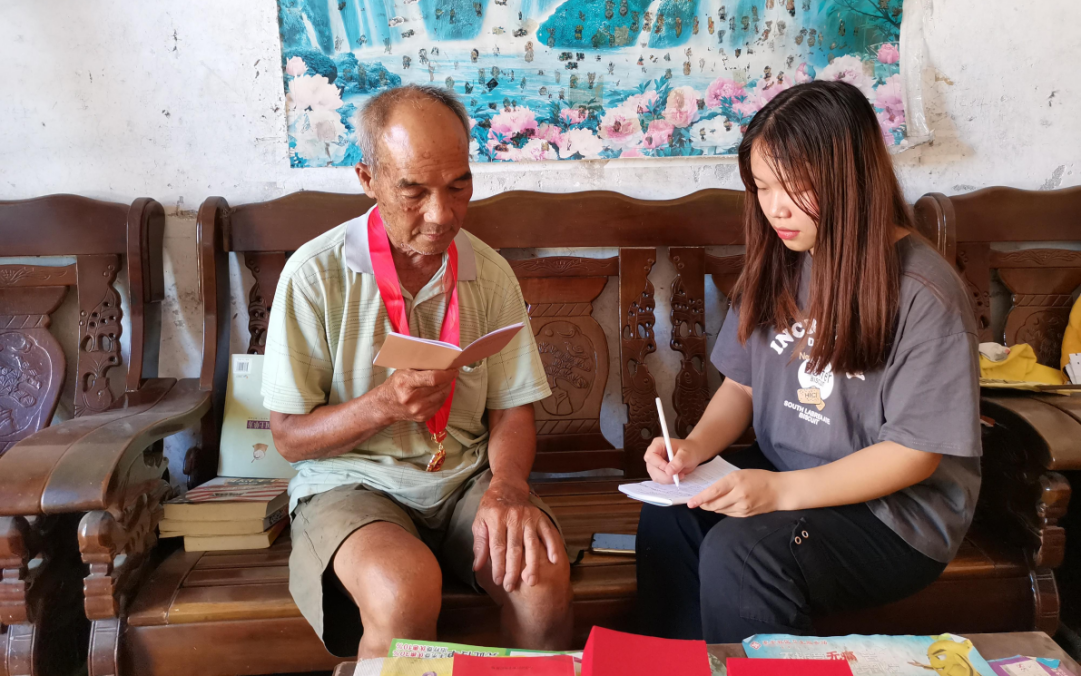 调研团成员前往广东阳江访谈老党员林平广。林平广同志于1966年入党,至今党龄已55年,今年他还荣获了“光荣在党50年纪念章”。他表示,加入中国共产党可以更好地帮助人民群众,他想成为其中一员为群众服务,中国共产党一切为人民的宗旨,更是坚定了他入党的想法。当谈及入党后林老的生活变化时,他满脸自豪说道:“有中国共产党,才有我们今天的生活。”