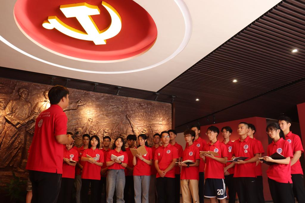 随后,实践队前往广宁县西江农民运动史迹陈列馆,以轮流讲解的方式,加深学习和了解了西江农民运动史、中国共产党党史和广宁革命史,并特邀革命后代、有着43年党龄的陈诗华同志讲述广宁县江美村农民运动与土地革命的背景和过程。