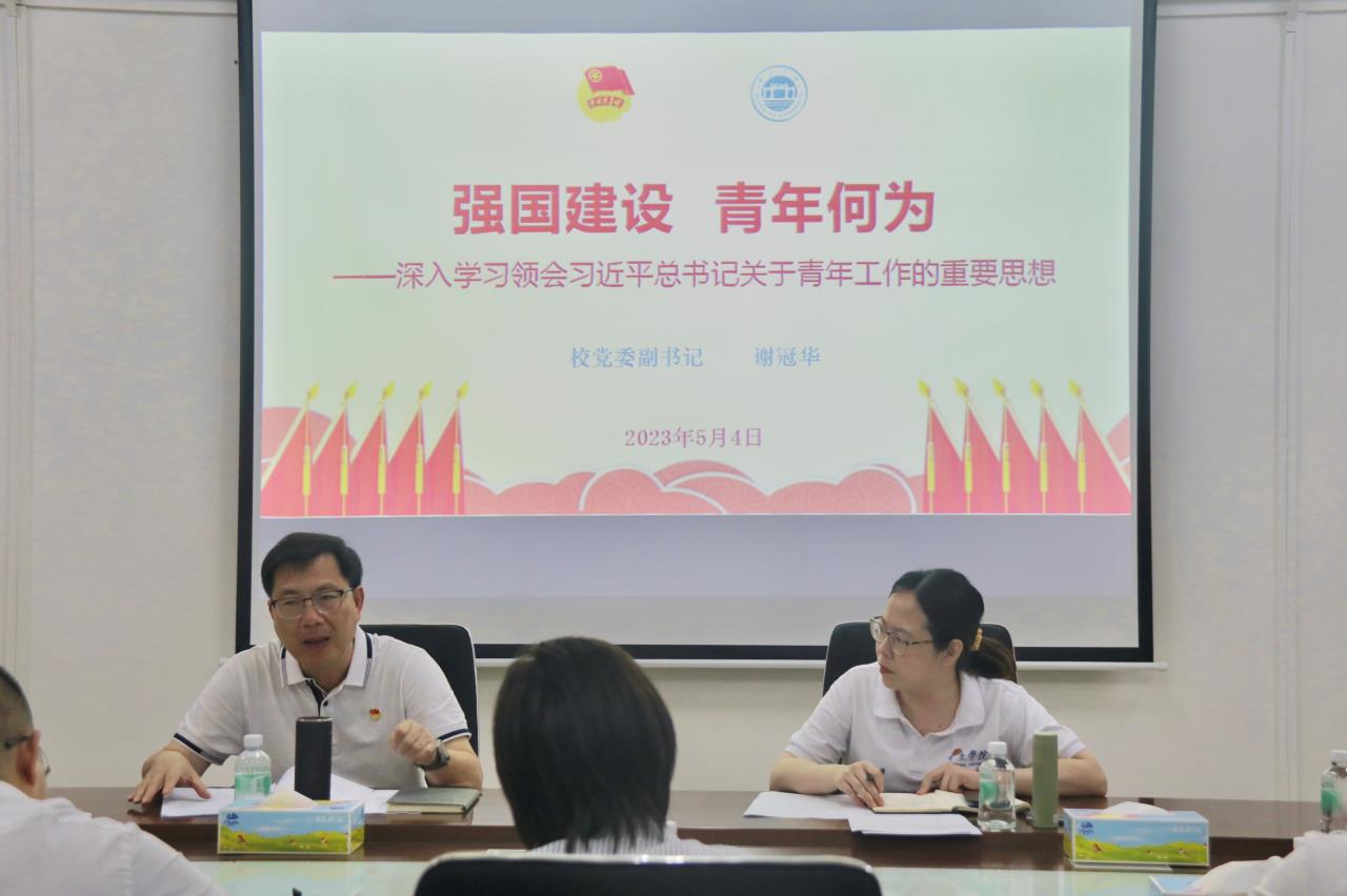 在今年“五四”青年节当天,校党委副书记谢冠华为我校团干、学生骨干代表上了一堂题为《强国建设,青年何为——深入学习领会习近平总书记关于青年工作的重要思想》的主题党课。校院两级专职团干、校学生会主席团成员、团委各工作部门学生骨干代表参加培训。