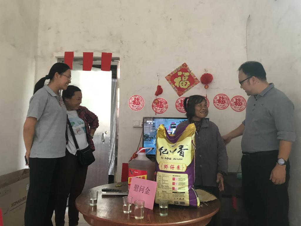 2019年10月25日,团委党支部在团委书记陈前的带领下赴广宁县横山镇开展扶贫入户调查活动,详细了解了帮扶对象家中情况,为梁彩容家送上电视机,现场安装好,并送上慰问金和生活物资。